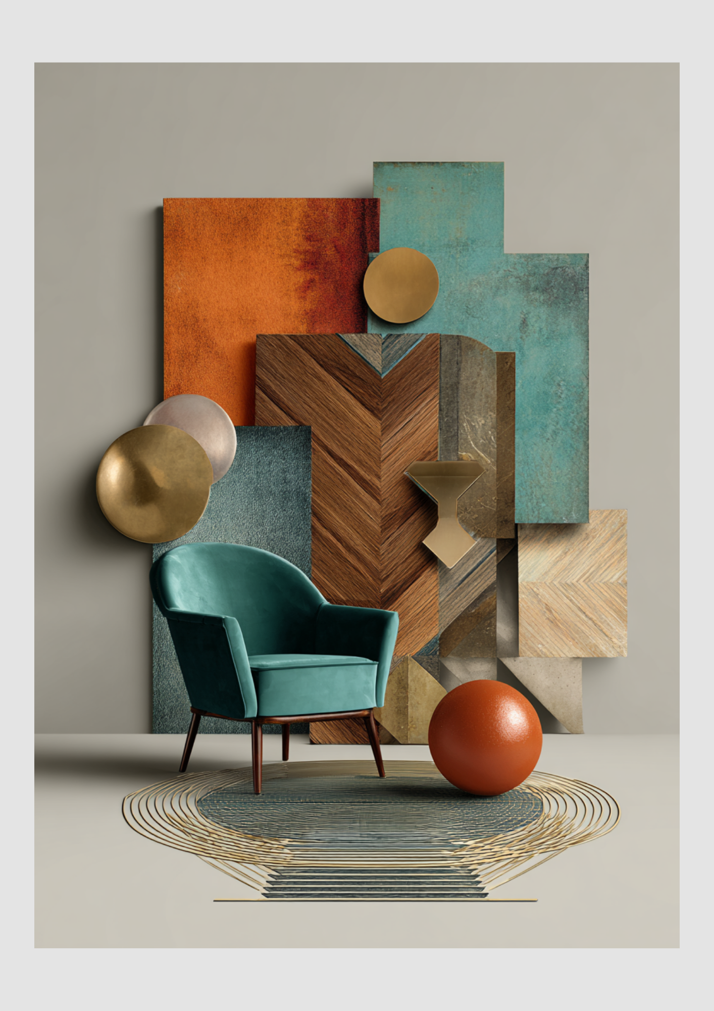 I first created a mood board for colour and materials. Based on this mood board, I made a render: